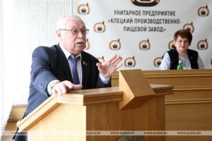 Анатолий Степанович Бойко подтвердил, что район в лице РУП «Минск Кристалл» приобрел надежного инвестора. И напомнил присутствующим, как в свой первый визит на Клетчину Президент Республики Беларусь А.Г.Лукашенко с негативной точки зрения отметил: «Да, есть, к сожалению, в нашей стране еще и такие хозяйства как «Туча» (в то время совхоз, образно говоря, лежал на лопатках). Сегодня сельскохозяйственный производственный филиал – одно из передовых предприятий района, лидирующее по производству молока и картофеля, а также – размеру заработной платы своих тружеников.