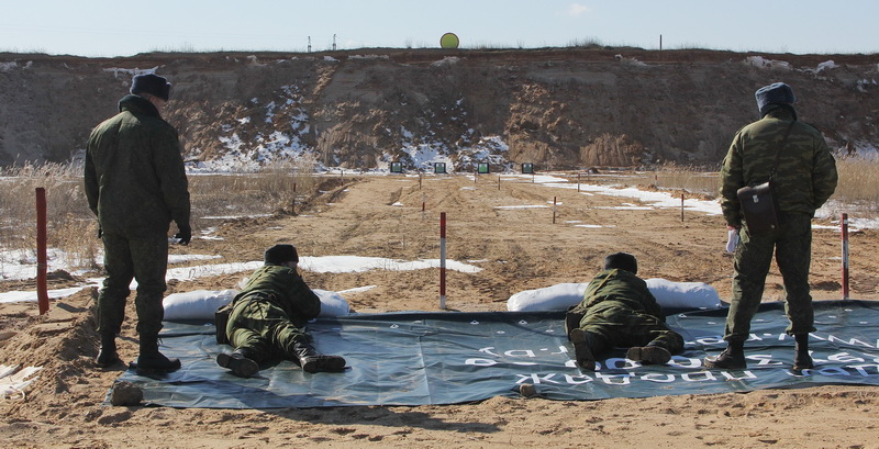 Автоматчики находились от мишени на расстоянии 100 метров. Им предстояло выполнить стрельбу из положений лежа, с колена и стоя.