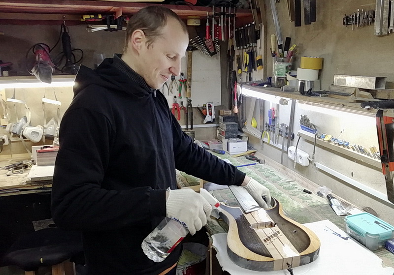 – История, которая изменила мою жизнь, началась с того, что друзья начали просить меня помочь с ремонтом гитар. Менял грифы, лады, научился покраске – натренировался на старых советских моделях, которые отдали знакомые. А первая моя работа появилась, когда однажды принесли китайский инструмент.