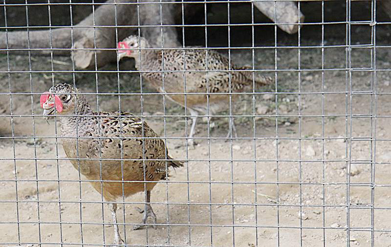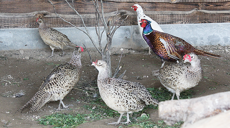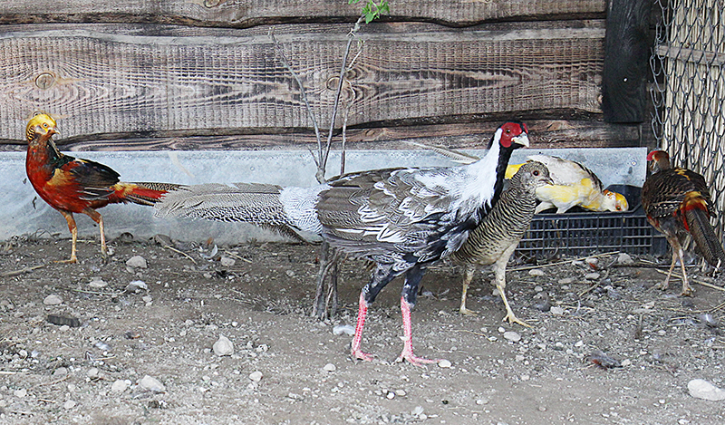 – В них живут румынские фазаны – самец и две самки. Рядом – 9 охотничьих фазанов, – продолжила экскурсию хозяйка. – Еще у нас есть золотые и серебряные фазаны, а также лимонный фазан.