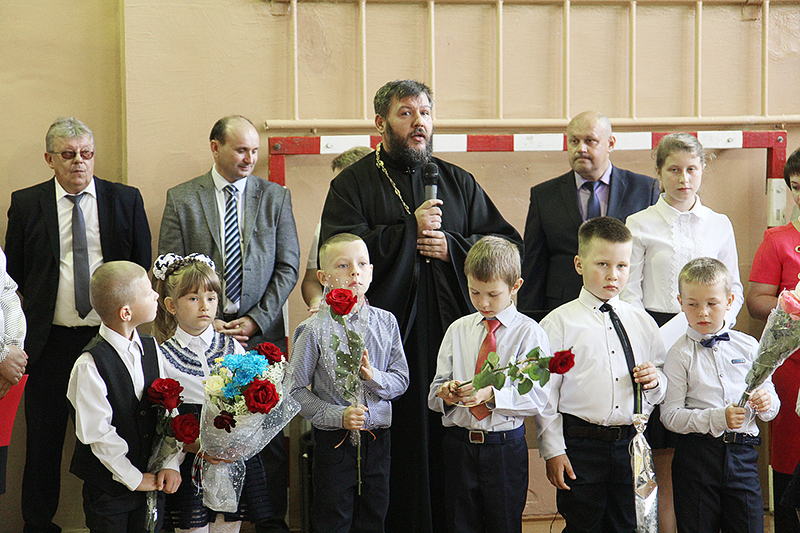 – Отрадно, что и у Грицевичской школы есть будущее, – обратился ко всем присутствующим Анатолий Михайлович. – 87 учеников свидетельствуют о том, что учреждение образования будет жить и работать, его стены будут еще долго наполнены детскими голосами, ведь на смену четырем одиннадцатиклассникам сегодня пришли 11 первоклашек. Вот она – перспектива! Все они рослые, симпатичные, умные, смелые ребятишки, и родители не должны беспокоиться о них, пока те находятся в стенах школы, ведь здесь трудятся опытные и мудрые педагоги, пополняют коллектив молодые специалисты (в этом году в школу прибыли два молодые учителя – белорусского языка Мария Валерьевна Чернухо и истории Любовь Владимировна Ромашко. – Прим. авт.), свой вклад в воспитание вносит местное духовенство. Ребята воспитываются не только в ходе образовательного процесса, но и личным примером наставников, их трудолюбием и отношением к делу.