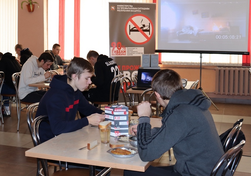 Двойную пользу принес «Обед без сигарет» учащимся Клецкого сельскохозяйственного профессионального лицея. Все потому, что их не только вкусно накормили повара столовой учреждения образования, но еще и работники МЧС предложили свою «пищу для размышлений» о том, как жить, жизнь не прожигая.
