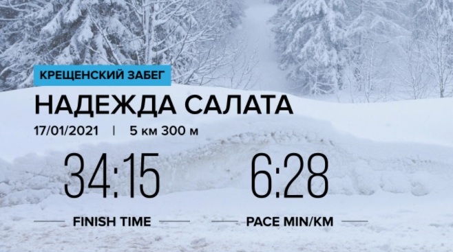 Жительница Клецкого района Надежда Салата стала участницей «Крещенского забега», организованного сегодня в Минске Белорусской федерацией легкой атлетики. Соревнования в этом году проводились впервые и прошли при -18 градусах.