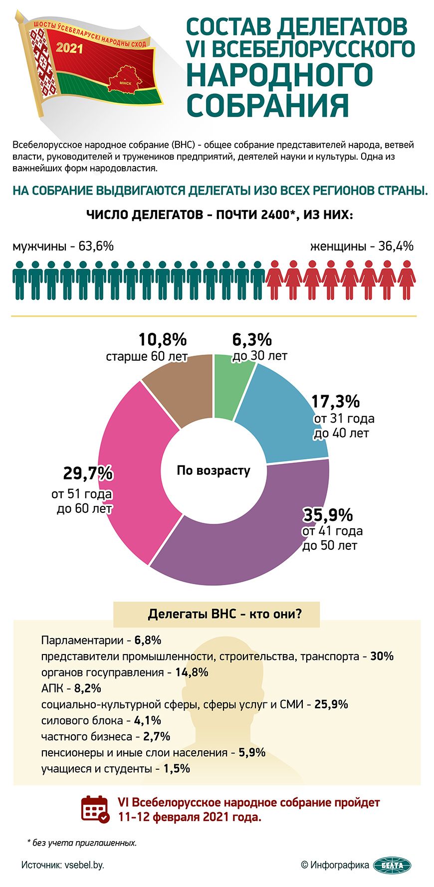 VI Всебелорусское народное собрание пройдет 11-12 февраля 2021 года.