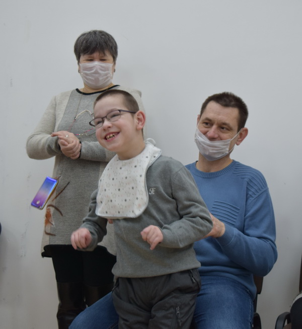 Сейчас самостоятельно Альберт не ходит, но он всячески выражает желание это делать: предпринимает попытки и при поддержке папы пытается двигаться. Родители замечают за ним желание подняться со стула, а когда мальчика поднимаешь и держишь в вертикальном положении, он переставляет ноги и пытается идти. Руками указывает направление, куда хочет двигаться, эмоциями и звуками реагирует, если направление выбрано неверно.