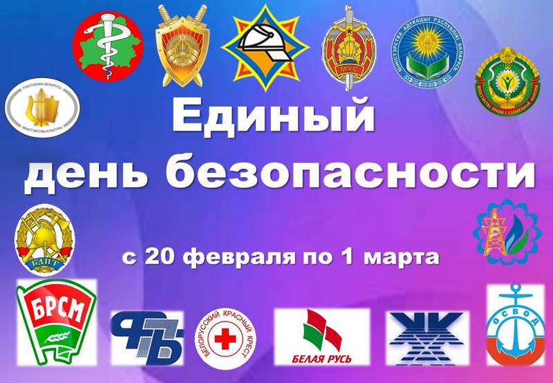 Акция «Единый день безопасности» пройдет по всей стране с 20 февраля по 1 марта. В эти дни состоятся целенаправленные профилактические мероприятия по предупреждению чрезвычайных ситуаций, правонарушений и преступлений, а также обучение поведению в условиях ЧС, аварий, оказанию первой медицинской помощи. В ходе акции будет проведена проверка элементов системы оповещения посредством отправки смс-сообщений.