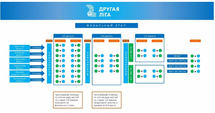 Далее коллективы, занявшие наиболее высокие места в своих дивизионах по итогам областного этапа сыграют в финальном этапе. На данной стадии турнира командам предстоят двухматчевые противостояния на выбывание.