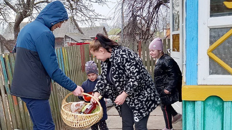 «Кошык» кукОльников исправно наполнялся крашенками и десятками сырых яиц, пирогами, салом, «гарэлкай», некоторые хозяева одаривали деньгами. В какой-то момент микроавтобус, который сопровождал волочебников, стал представлять собой передвижной склад с пасхальными яйцами.