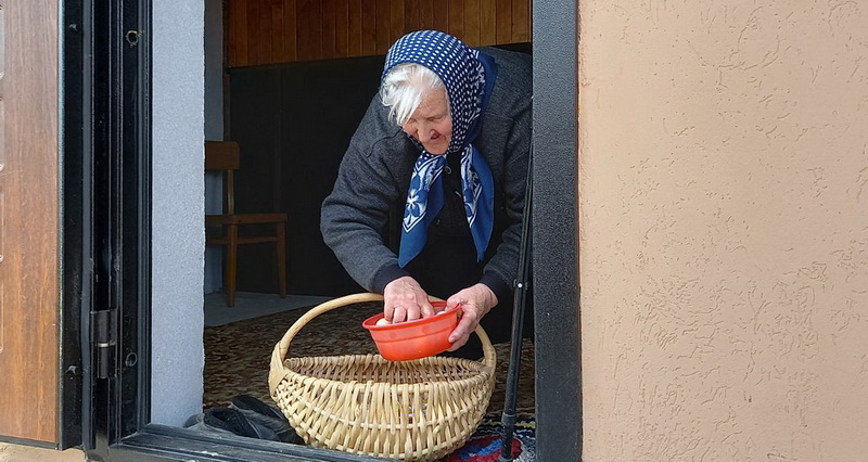 Еще одним домом в деревне, где по-особому ждали кукОльников, был дом Владимира Демьяновича и Софьи Антоновны Курило. Они тоже активно делились информацией о местных пасхальных традициях, когда шла подготовка проекта. Глава семьи в молодые годы сам до утра обходил дворы земляков в день Светлого Христова воскресения. Играл на барабане, сделанном своими руками.