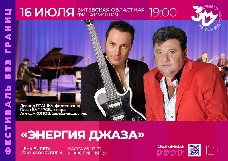 Стала известна первая программа проекта «ФЕСТИВАЛЬ БЕЗ ГРАНИЦ», который неизменно проходит в ВИТЕБСКОЙ ОБЛАСТНОЙ ФИЛАРМОНИИ. Это «ЭНЕРГИЯ ДЖАЗА» с Леонидом ПТАШКОЙ и другими.
