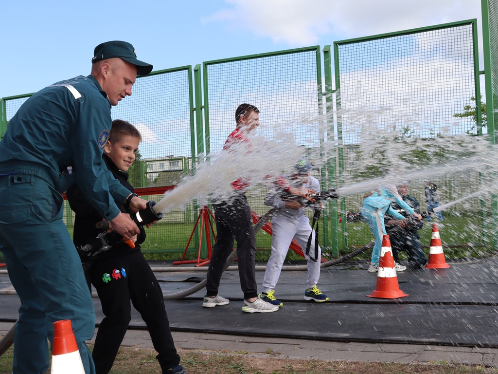 А третий тур соревнований лишь укрепил позиции команд и подтвердил ранее заработанный результат! Используя настоящее спасательное оборудование – пожарные рукава со стволами – мальчишки и девчонки соревновались в меткости и точности, стараясь сбить водой мячи.