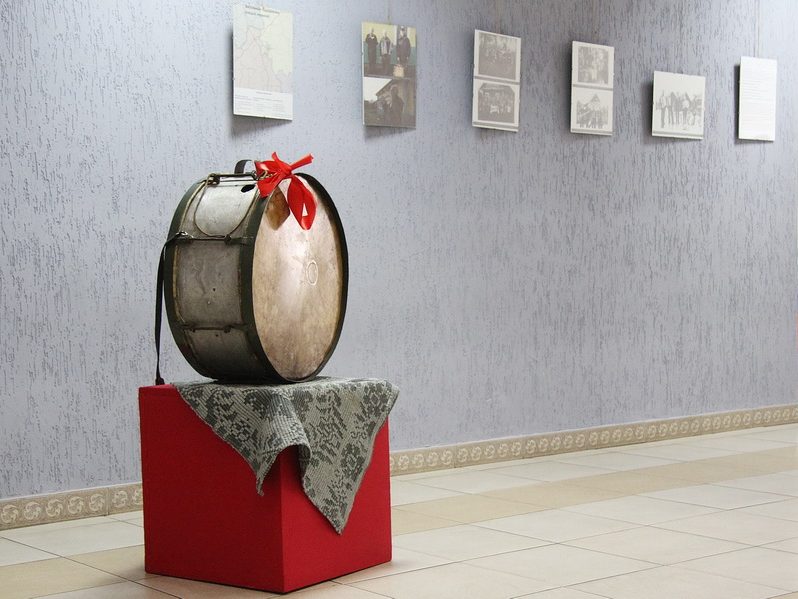 Клетчане увидели барабан из деревни Рубеж, футляр для скрипки и кларнет. У каждого из них – своя история. Узнать ее можно, посетив выставку “Клецкая музыка. З гісторыі высковых капэлаў”.