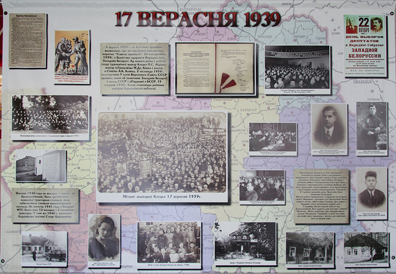 Таксама прадстаўлена шмат фотаздымкаў таго часу і дакументы кляччан, якія былі асуджаны за антыпольскую дзейнасць. Трэці раздзел “Клеччына. 17 верасня 1939 года” сведчыў аб тым, як і з якімі пачуццямі сустракалі жыхары раёна саветы. Цэнтральнае месца выставы было адведзена копіям лістовак і агітацыйных плакатаў, прысвечаных вызваленчаму паходу Чырвонай Арміі, фотаздымкам дэлегатаў Народнага сходу, урачыстага мітынгу ў Клецку.