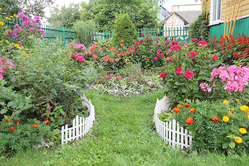 Зоя Михайловна очень любит цветы, поэтому за их выращивание взялась с большим энтузиазмом. Год за годом, и участок на улице Железнодорожная, 9 в агрогородке стал напоминать мини-ботанический сад. Путешествие по цветочному раю начинается прямо с улицы, где вдоль всего забора высеяны неприхотливые, но яркие, обильно и долго цветущие бархатцы.