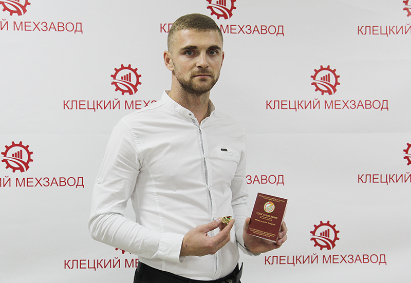 Форвард футбольной команды "Клецк" Роман Федоров получил удостоверение и золотой нагрудный значок "Физкультурник Беларуси".…
