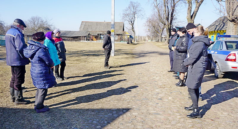 В пятницу, 18 марта, на встречу с жителями деревни Руда приехала не только председатель местного Совета депутатов Алла Сенькевич, руководитель сельхозучастка “Синявка” ОАО “Клецкий райагросервис” Александр Кульчик и медсестра Синявской участковой больницы Ольга Медведская, но также участковый инспектор милиции Игорь Колеина и сотрудник РОЧС Вадим Степанюк.