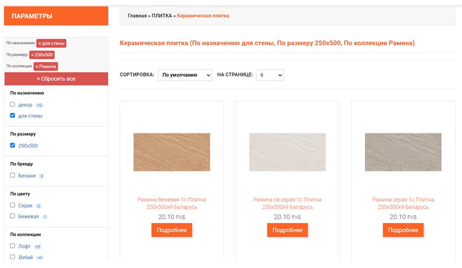 В карточке каждого товара дана общая информация, технические характеристики, а также размещеноизображение товара. Стоит отметить, что для удобства покупателей в каждом разделе установлены фильтры (параметры) для поиска товаров, которые позволяют максимально быстро и точно подобрать нужный продукт.