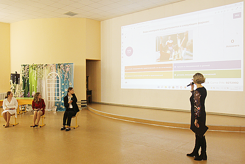 Девушки давали ответы онлайн через специальное приложение. А их результаты сразу же выводились на большой экран зала Клецкого центра детского творчества.