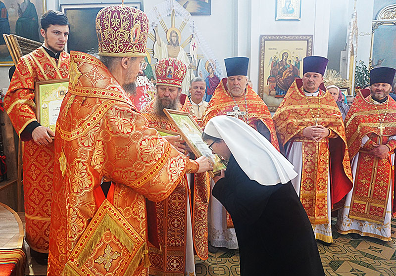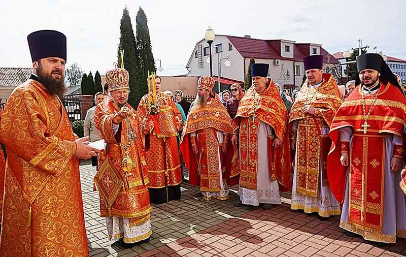 После совершения праздничного крестного хода Митрополит Вениамин поздравил причастников с принятием Святых Христовых Таин, преподал всем архипастырское благословение, а также наградил многих прихожан Архиерейскими Грамотами и Благодарностями «во внимание к усердным трудам на благо Слуцкой епархии».