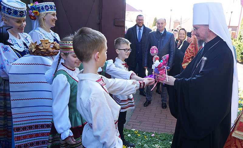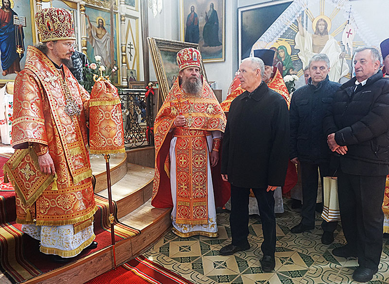 Приветствовали Митрополита Вениамина председатель районного исполнительного комитета Анатолий Лодыга и заместитель председателя РИК Геннадий Буйвило, прихожане храма и дети.
