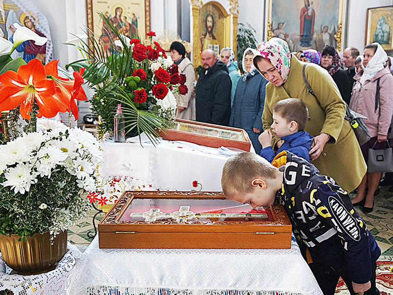 Во время Богослужения люди имели возможность поклониться Кресту преподобной Ефросиньи Полоцкой, который был для этого специально привезен в наш город.