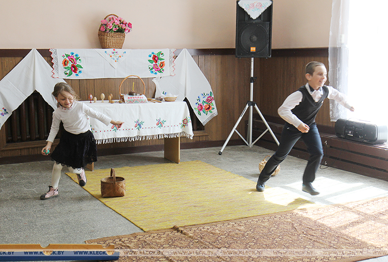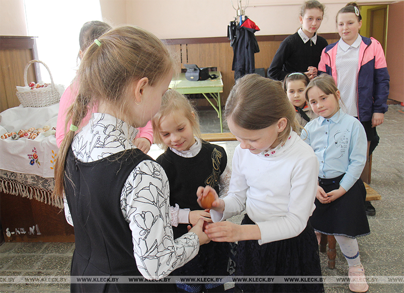В начале встречи заведующий Лазовичским сельским клубом Сергей Машко и культорганизатор Инна Дударевич рассказали школьникам про праздник Воскресения Христова, “кукОльников”, особенности обряда обхода дворов на Пасху.