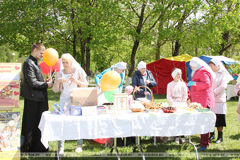 А неподалеку от амфитеатра проходила благотворительная акция «Сладость на радость». Мероприятие проводило Сестричество святой блаженной Валентины Минской при храме Воскресения Христова г.Клецка. Сестра Галина Соколовская подтвердила, что подобная акция уже стала традиционной в рамках празднования Дня семьи: