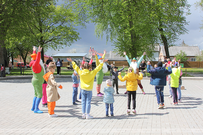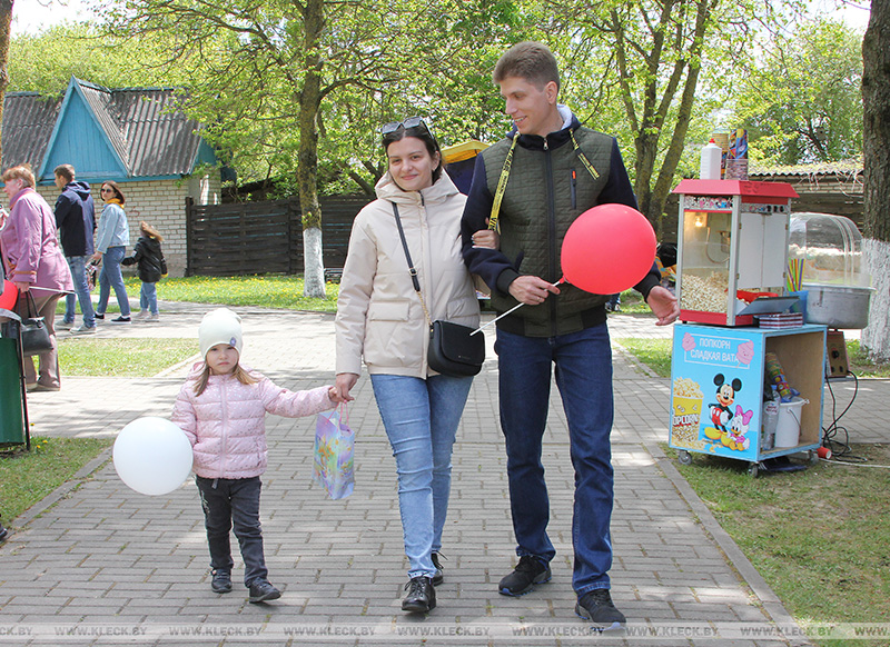 В этом красивом месте отдыха сегодня было весело и взрослым, и детям. Старшие с готовностью откликались на многочисленные «хочу» своих дочушек и сыновей, ведь не так часто в Клецке можно покататься с надувных высоких горок и попрыгать на батутах, полакомиться сладкой ватой и попкорном. Папы и мамы могли купить в мини-кафе хот-доги, блины и гамбургеры, выпить чашечку ароматного кофе или насладиться не забытым с детства вкусом фруктового киселя. Деток манили торговые ряды, импровизированные прилавки которых ломились от обилия игрушек, а юные модницы просто терялись от большого выбора украшений и заколок.