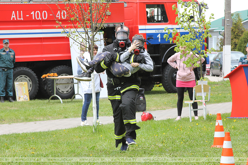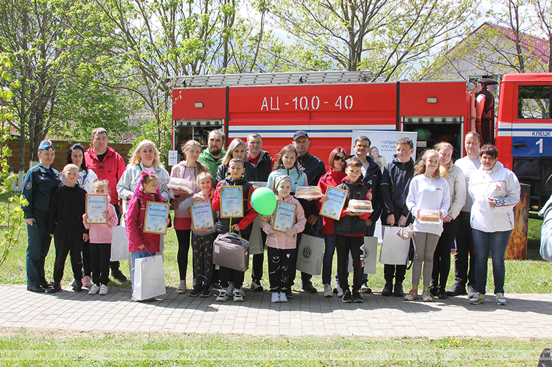 Заинтересованно, увлеченно состязались семь клецких семей в конкурсе «Мама, папа, мы – в безопасности сильны!» Здесь также было предусмотрено пять этапов. На первом глава семейства старался как можно быстрее снарядиться в боевую форму пожарных. Затем вместе «тушили пожар» – отец сбивал пламя, а мама с детьми, соблюдая весь алгоритм действий, вызывали на подмогу профессиональных спасателей. На третьем этапе папа всех «выводил через дымовой коридор» в специальных масках для спасения. Потом состязались в меткости, и кто быстрее эвакуируется из опасного места. Все семьи старались показать наилучший результат, но в этот раз удача улыбнулась семье Дудко, сын которой – учащийся четвертого класса первой городской школы Роман, показал хорошие навыки и знания основ безопасности жизнедеятельности.