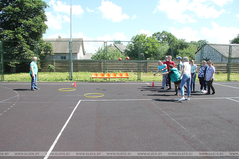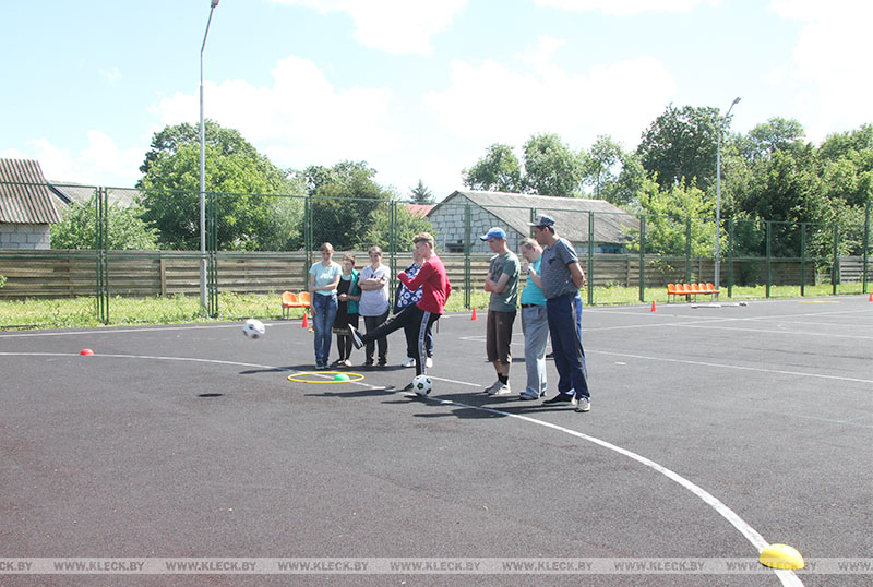 На универсальной спортивной площадке парни и девушки провели гимнастическую разминку, преодолели полосу препятствий, отработали броски по баскетбольному кольцу и удары по футбольным воротам.