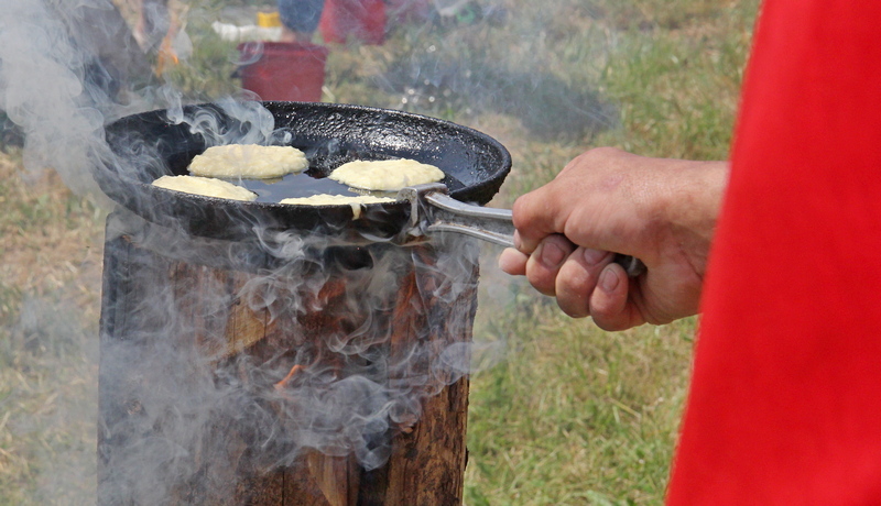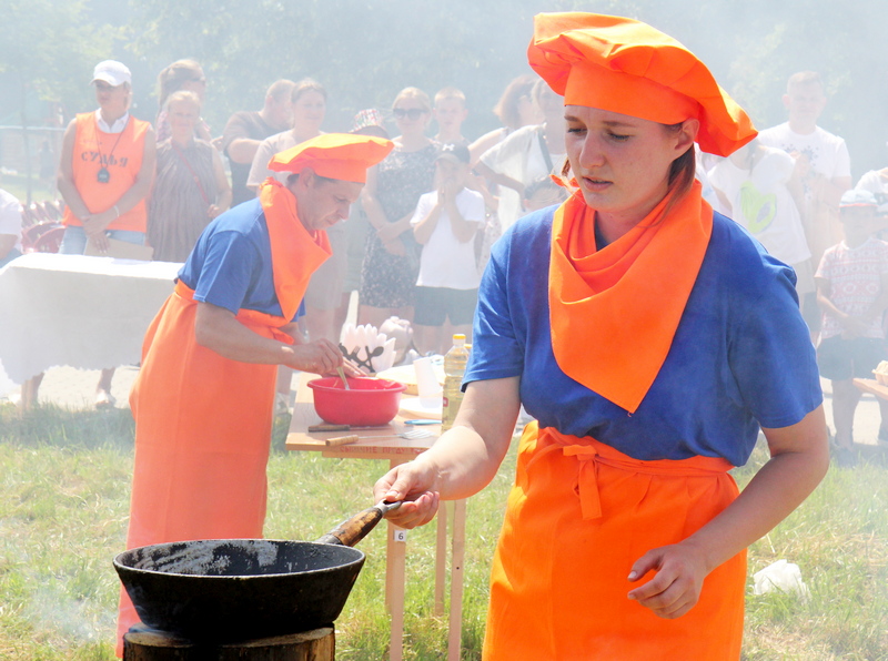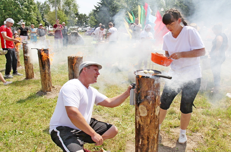Еще одним испытанием стала жарка драников на горящей деревянной колоде.