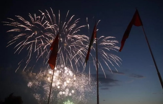 С последним аккордом гимна небо над Мяделя раскрасилось в цвета национального флага: праздничный фейерверк можно было видеть с любой точки города.