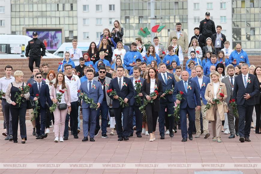 С утра День молодежи стартовал с традиционной патриотической акции “Беларусь помнит. Помним каждого” с театрализованным представлением от творческих коллективов Браслава и Витебского района. К мемориальному комплексу освободителям северного региона страны – советским воинам, партизанам и подпольщикам возложили цветы руководители области и города, представители Министерства образования, БРСМ и Форума молодежных организаций государств – участников СНГ “Вектор на будущее”.