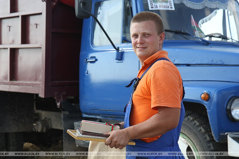 Также искренне благодарил он за плодотворный труд и Вадима Винничка, молодого кухчицкого водителя, который первым среди молодых коллег со всей Беларуси перевез 1000 тонн зерна.