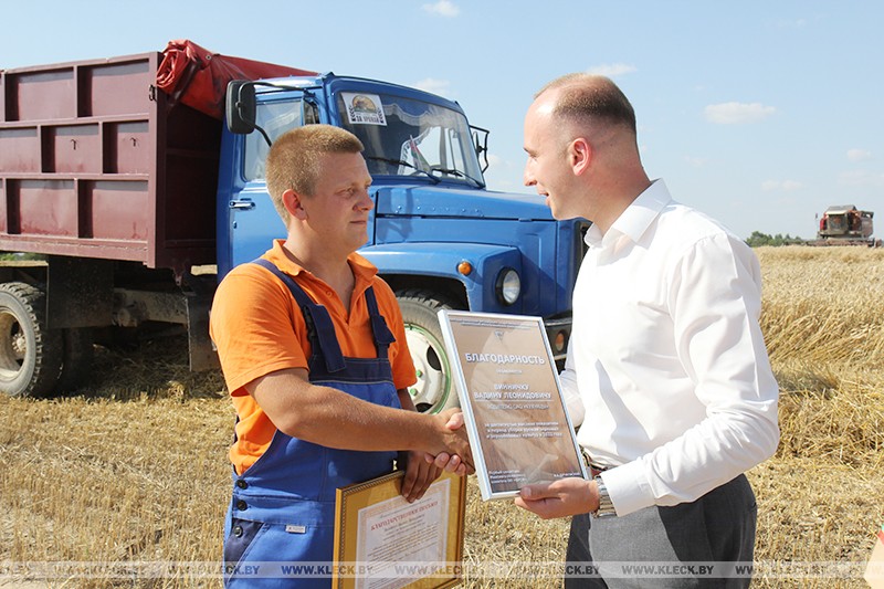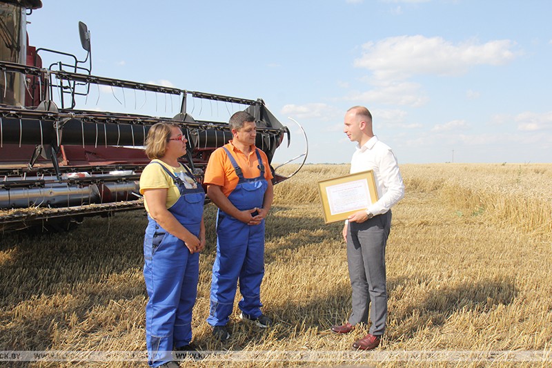 Благодарственные письма, подписанное первым заместителем председателя Миноблисполкома Сергеем Левковичем, этим героям жатвы вручил первый секретарь Минского областного комитета ОО «БРСМ» Александр Дичковский.