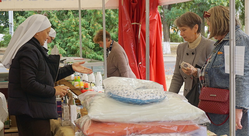 Жители города и его гости с интересом рассматривают многочисленные изделия и сувениры, книжную продукцию православных изданий, травяные сборы и бальзамы, мед и продукты пчеловодства, монастырскую выпечку.