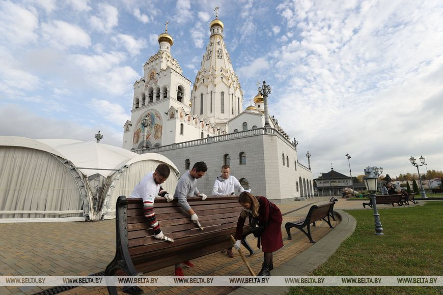 Традиционно программа составлена с учетом предложенных молодежью полезных инициатив. Так, во время трудовой акции “Нас объединяет история и вера” волонтеры благоустроили братскую могилу на Восточном кладбище, где покоятся останки 190 воинов, павших за освобождение Минска в 1941-1945 годах. По окончании работ молодежь зажгла лампады, почтила память героев-освободителей минутой молчания, возложила к мемориалу цветы. Волонтерские работы также развернулись и на территории Национального мемориального комплекса “Храм-памятник в честь Всех Святых и в память о жертвах, спасению Отечества нашего послуживших”.