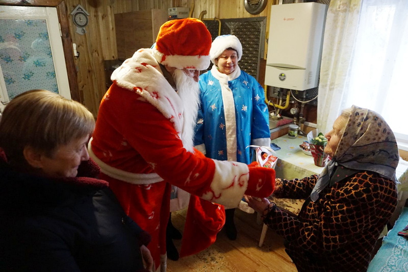 Частичку тепла своей души поспешили подарить руководители общественных районных организаций – совета ветеранов Валентина Ефимчик, “Белорусского союза офицеров” Игорь Шафран, ответственный секретарь БООВ Ольга Герасимович и директор Клецкого ТЦСОН Зоя Уласевич своим подопечным. Новогодние подарки из рук сказочных персонажей, в образе которых и выступили гости, принимала жительница агр.Заостровечье Данута Ивановна Белаш.