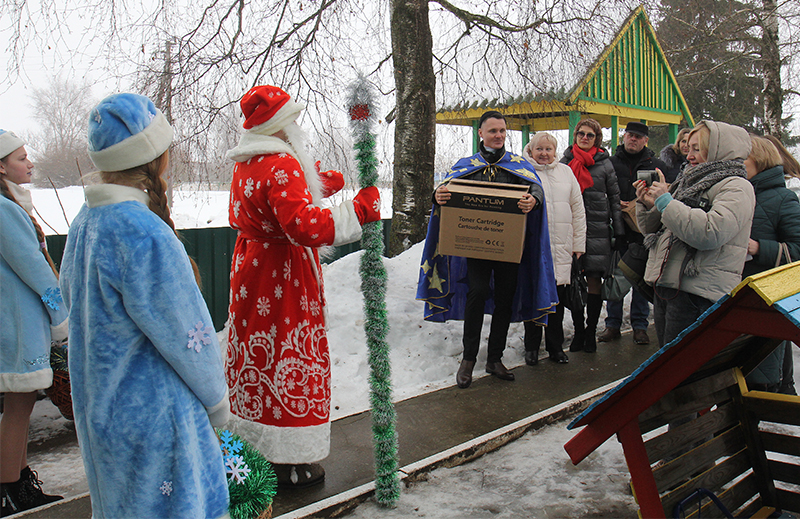 Колонну автомобилей из Минска на границе с Несвижским районом встретили представители Клецкого райисполкома, районного объединения профсоюзов, местного филиала ОАО «АСБ Беларусбанк» и ряда других учреждений. Всех их у стен приюта поприветствовали Дед Мороз со Снегурочкой. Далее они вместе с другими сказочными персонажами и ростовыми куклами всем участникам встречи подарили настоящий новогодний праздник.