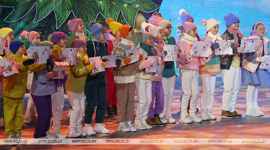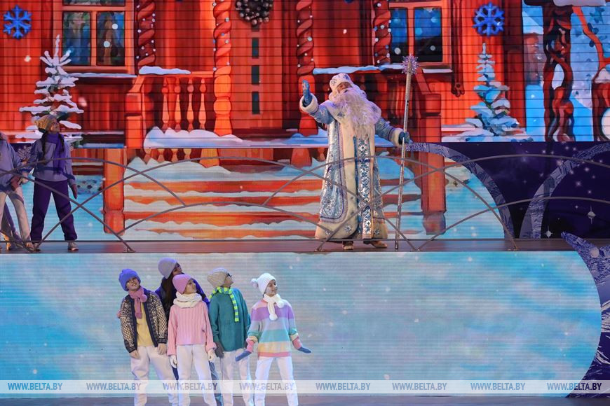 “От всего сердца еще раз поздравляю всех вас, маленьких и уже взрослых – будущее нашей Беларуси, ваших педагогов, воспитателей, учителей, ваших родителей с Новым годом! Я желаю вам отличного настроения, крепкого здоровья и, самое главное, успехов в учебе. Учеба для вас – главнейшая задача на этом этапе вашей жизни. А сейчас с большим удовольствием уступаю эту сцену нашим хозяевам – Деду Морозу и Снегурочке”, – сказал белорусский лидер.
