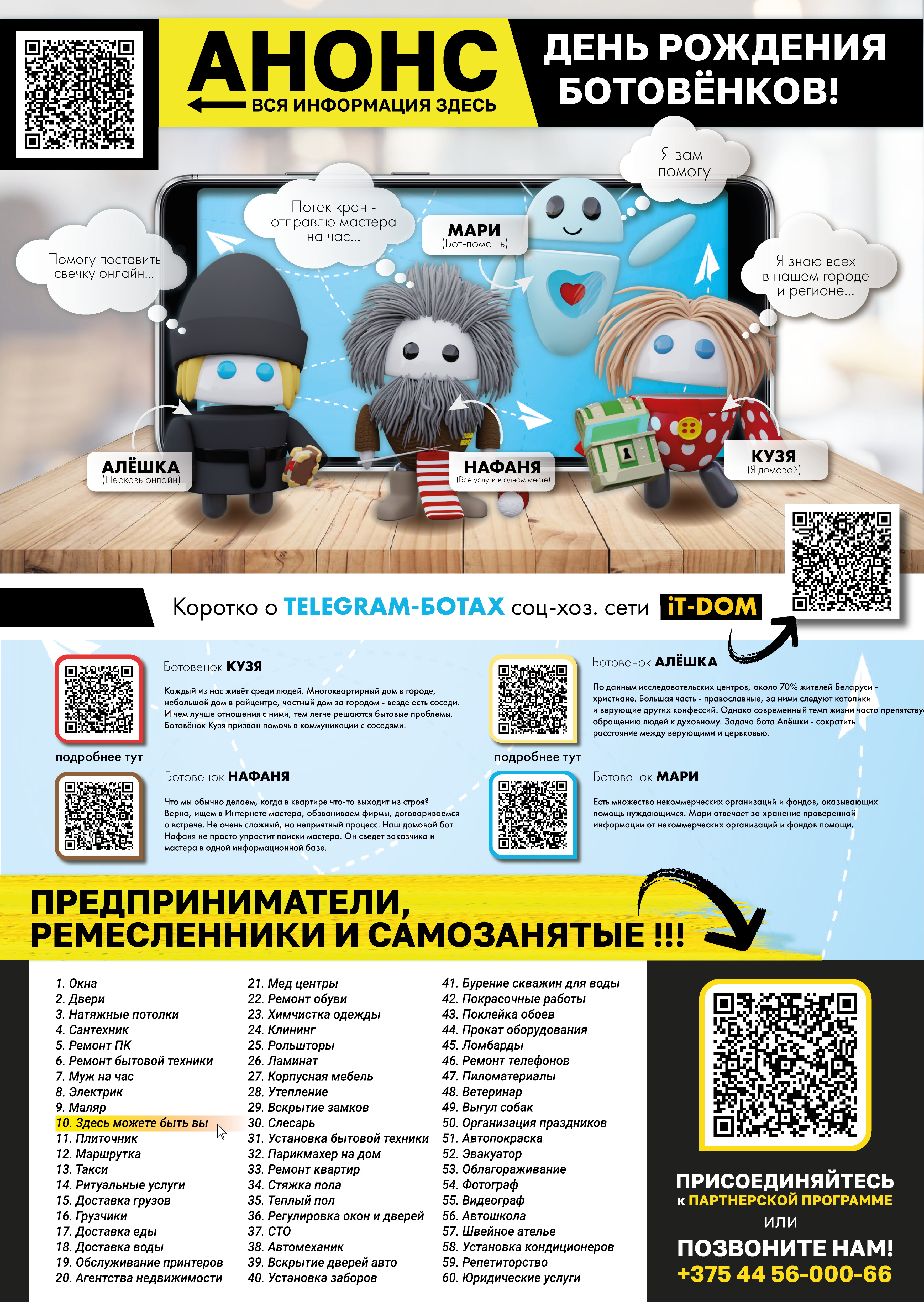 Стартап-проект it–dom (айти дом) и социально-хозяйственную сеть smart family of bots (семья умных ботов) на базе Telegram запустили в Минске и городах Минской области