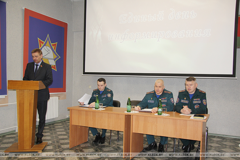 В рамках единого дня информирования на встречу с коллективом райотдела по чрезвычайным ситуациям прибыли представители Министерства по чрезвычайным ситуациям Республики Беларусь, Минского областного управления МЧС, Клецкого райисполкома.