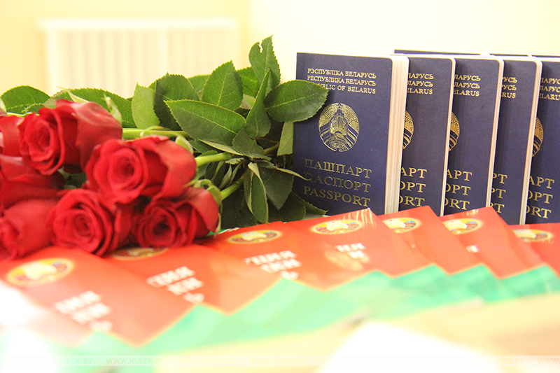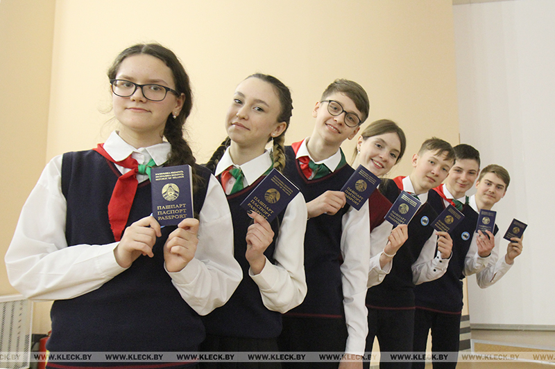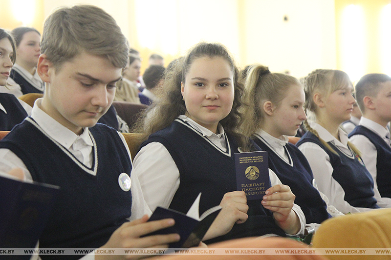 Восьмиклассников района в День Конституции пригласили на республиканскую акцию “Мы – граждане Беларуси”. Восемнадцать наших земляков, которым исполнилось 14 лет, сегодня получили паспорта. Это отличники учебы, призеры и победители олимпиад, активисты БРСМ, обладатели медалей спортивных соревнований.