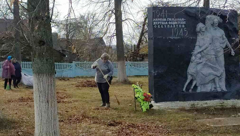 Сначала навели порядок в д.Колки на месте памятника мирным гражданам– жертвам фашистских оккупантов, привели в порядок сквер по ул. Победы в д.Колки.