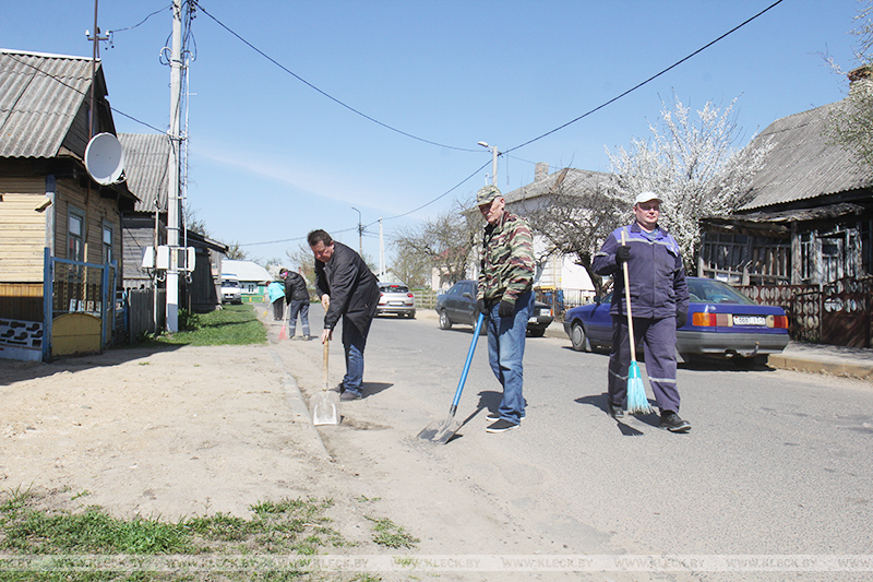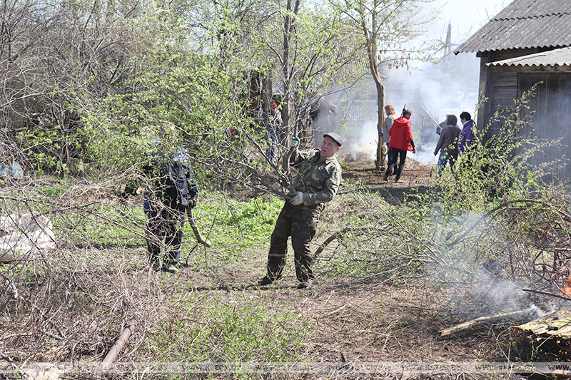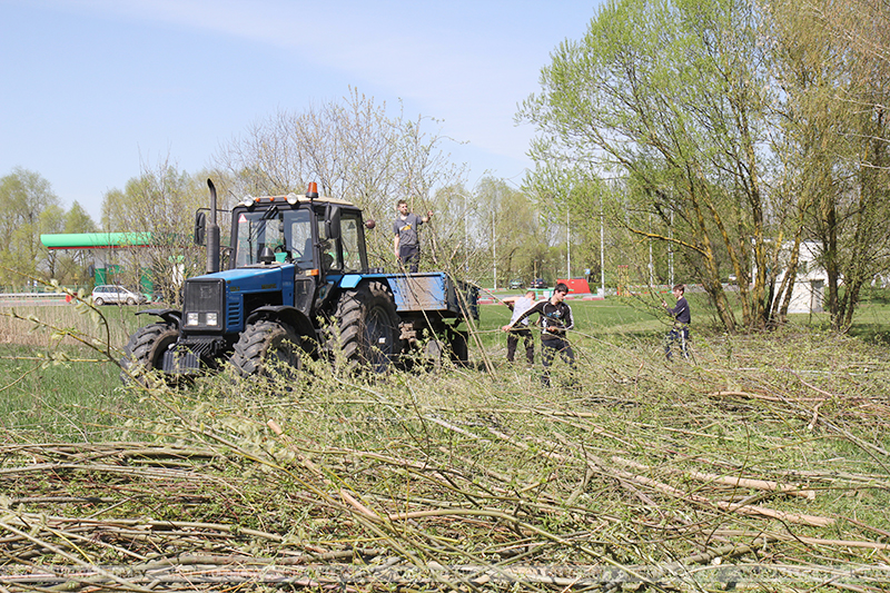 Так, по ул.Маковчука работники местного филиала Белтелекома сметали возле дорожных бордюр накопившийся за зиму песок, а представители райагросервиса на оставшемся без хозяев подворье №11 срезали старые плодовые деревья, вырубали разросшийся кустарник и сжигали ветки.