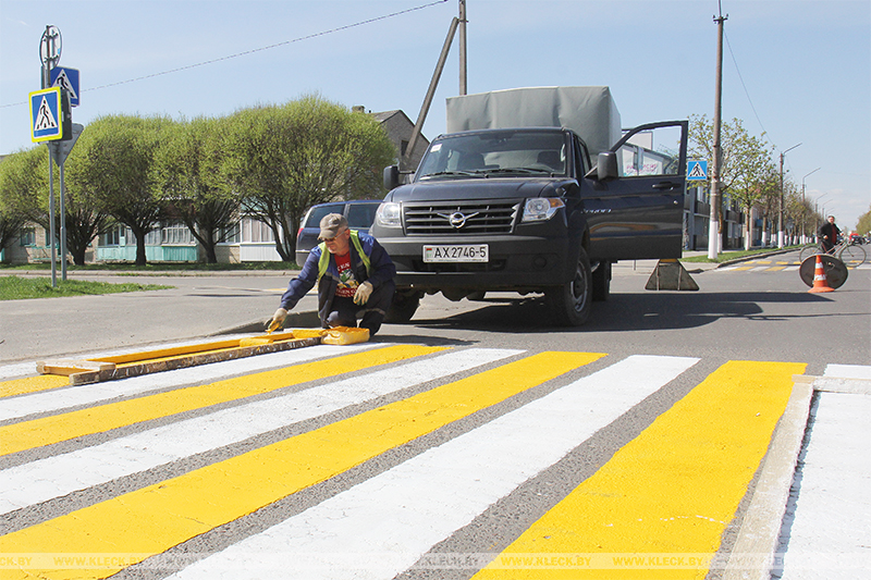 На клумбах центральных улиц Клецка коммунальники продолжали высадку цветов, нанесение дорожной разметки и обновление пешеходных переходов. Многолюдно было и в городском парке.