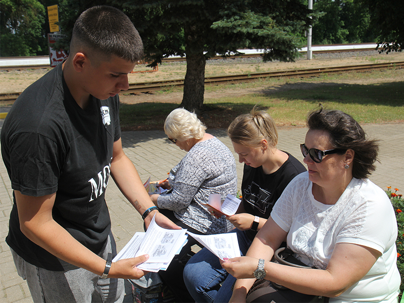 В Клецке в разгар летних школьных каникул Белорусская железная дорога совместно с БРСМ провела акцию «Безопасность в ваших руках». В акции приняли участие начальник станции Климович Василий Петрович, первый секретарь клецкого РК ОО «БРСМ» Наумик Валерия Андреевна совместно с Молодёжным отрядом охраны правопорядка.