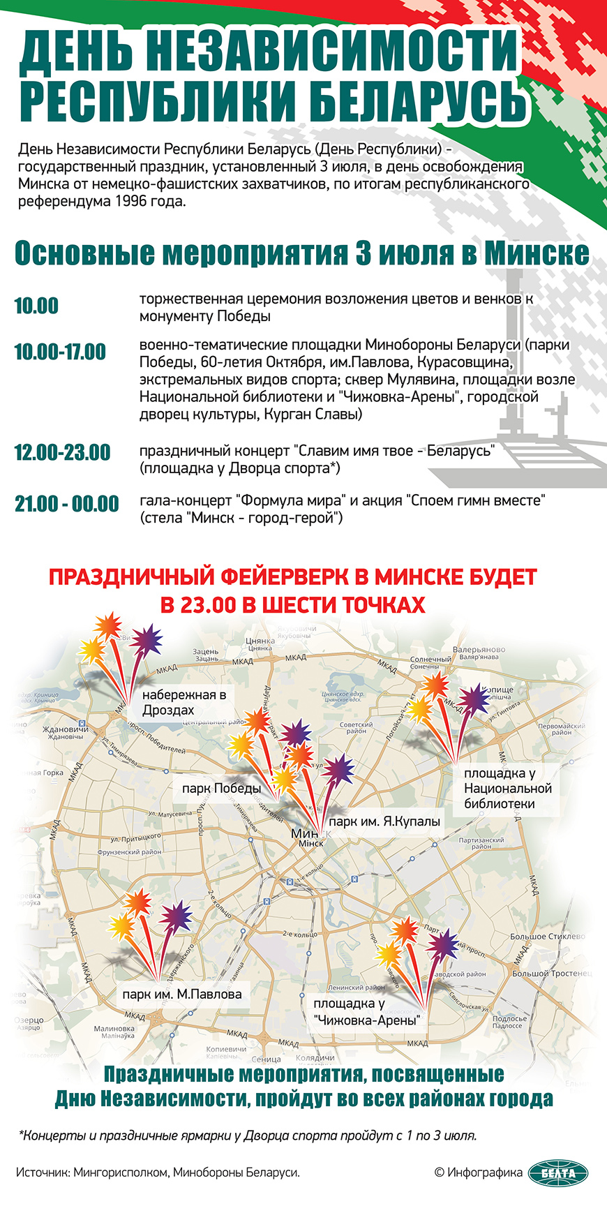 Этот праздник – дань поколениям белорусов, которые на протяжении веков отстаивали право жить на родной земле и самостоятельно определять собственную судьбу. Он хранит память о беспримерном подвиге белорусского народа в годы Великой Отечественной войны. Демонстрирует историческую зрелость, национальное достоинство и твердую волю наследников народа-победителя укреплять свою государственность.