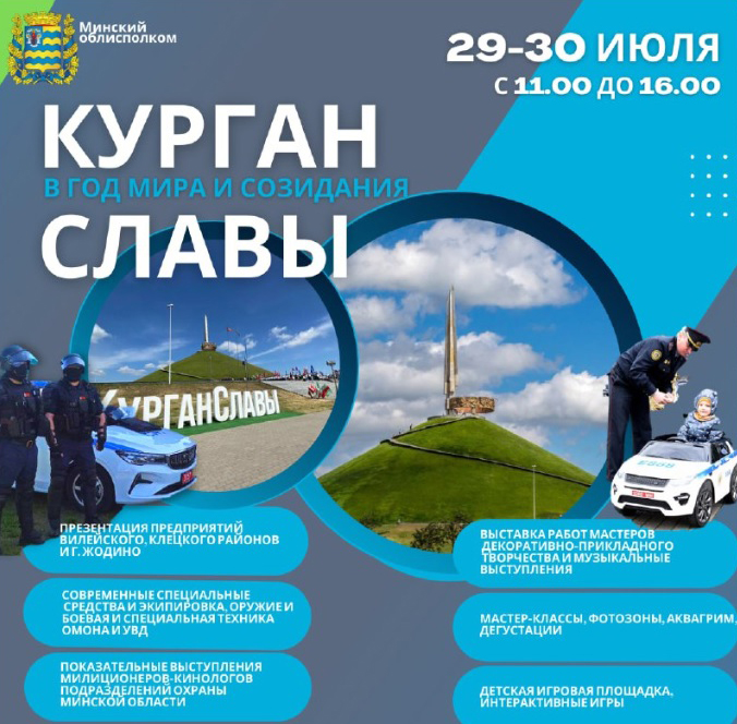 Выступления кинологов, ретроавтомобили, дегустации от лучших предприятий Минской области, анимационные мероприятия с участием ростовых кукол и детских электромобилей