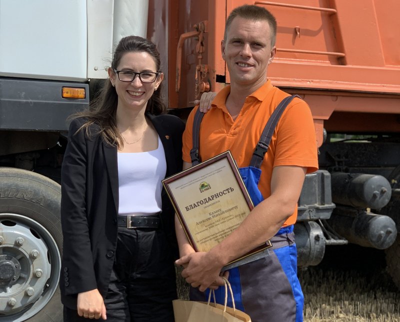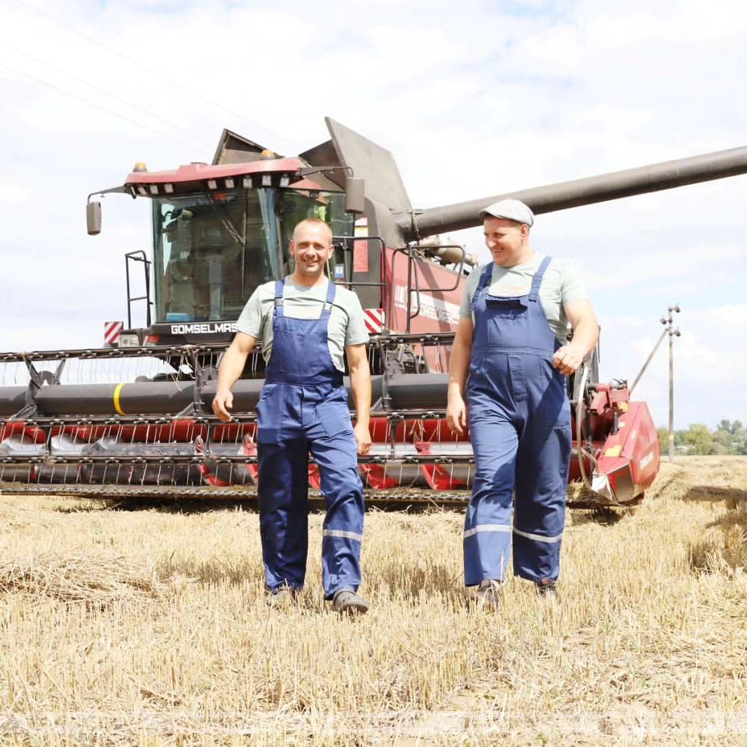Экипаж в составе старшего комбайнера Олега Панича и комбайнера Александра Солодкого из сельхозфилиала «Клецкий»…